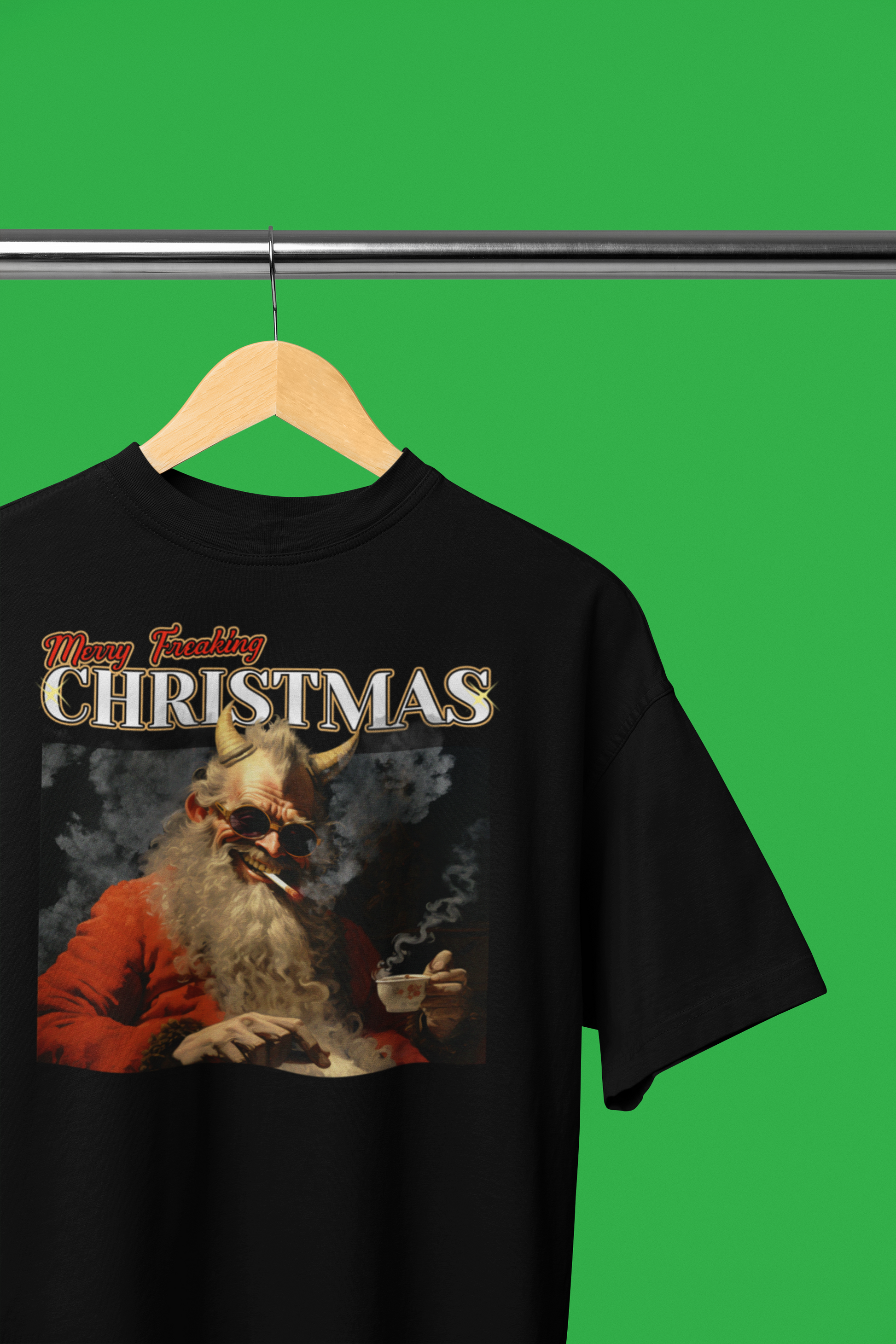 Celebrate the holidays with our Merry Freaking Christmas Krampus Tee! Embrace your quirky side with this playful yet unconventional design. Perfect for those who don't take themselves too seriously. Give the gift of humour and style this season!