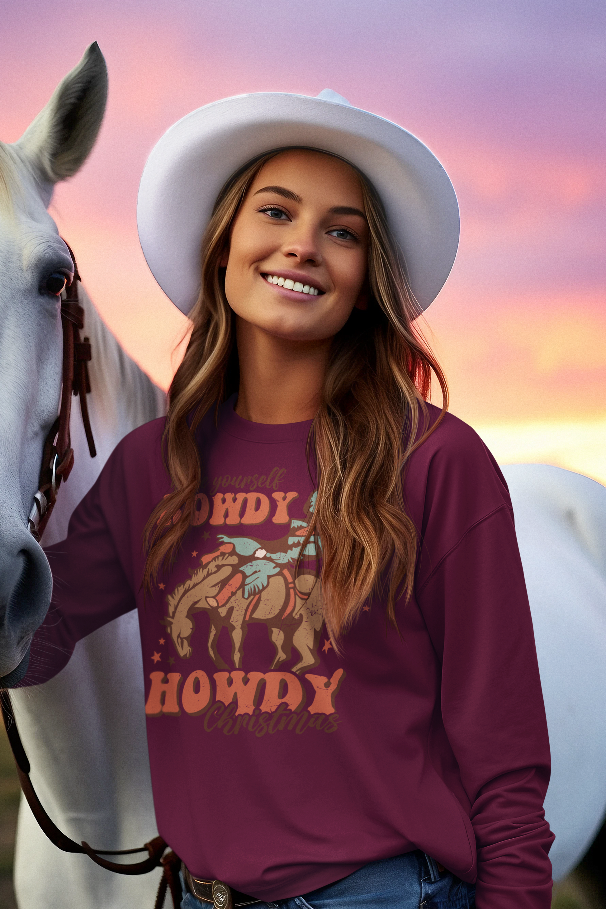 Celebrate in true western style with the Have A Rowdy Howdy Christmas Retro Crewneck.