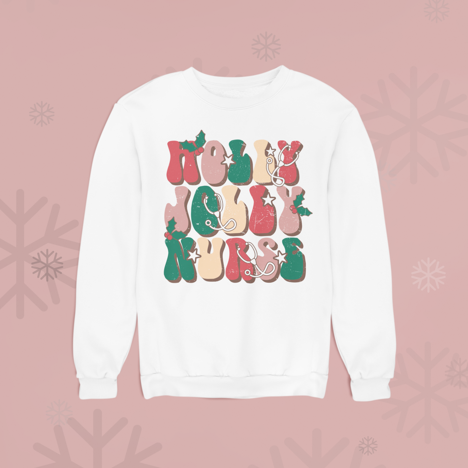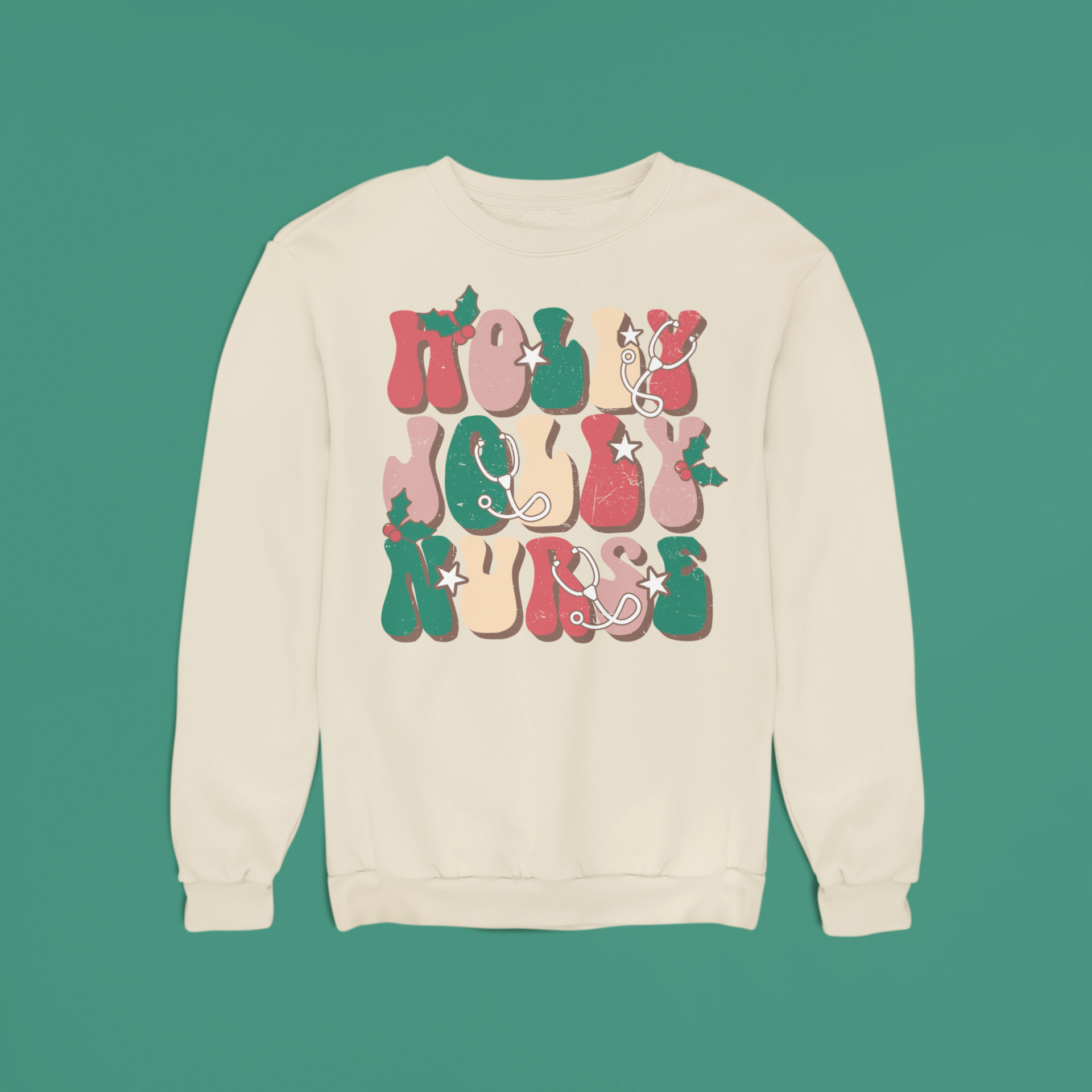 Spread some cheer while taking care in the Holly Jolly Nurse Retro Crewneck. With a playful design and comfortable fit, you'll be ready to sleigh the day (and your patients' hearts). Perfect for any festive shift, this crewneck is sure to make you the jolliest nurse around!